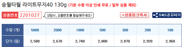 ▼ 송월타월 라이트무지40 130g 바로가기 ▼